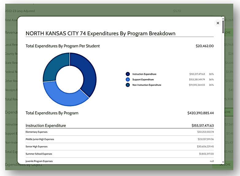 The image below displays how the website looks in practice, using the North Kansas City 74 School District as an example.