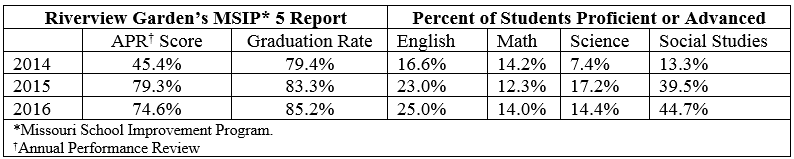 Based on the scores below, it is easy to see why parents do not want to put their children back in the Riverview Gardens school system: