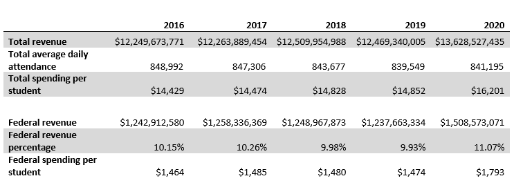 Of course, we did get about $300 million in federal stimulus funds for public education, but that only explains the $330 difference in federal spending per student between 2019 and 2020. State and local spending also increased. In 2021, Missouri is set to receive an additional $2.8 billion in federal stimulus, or over $3,000 for every student in the state. Does that mean that spending per student will be $19,000 in 2021? Will it be more?
