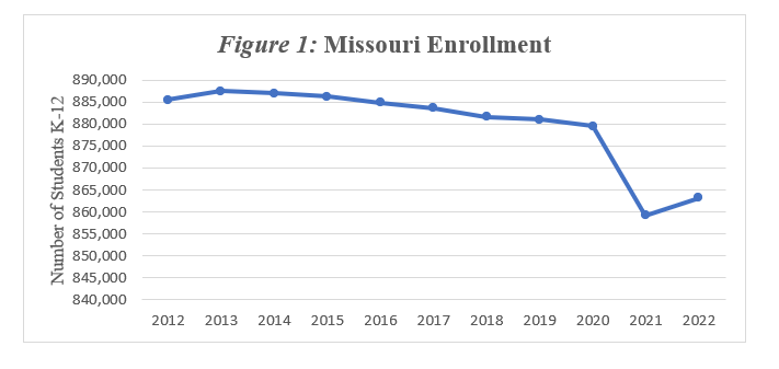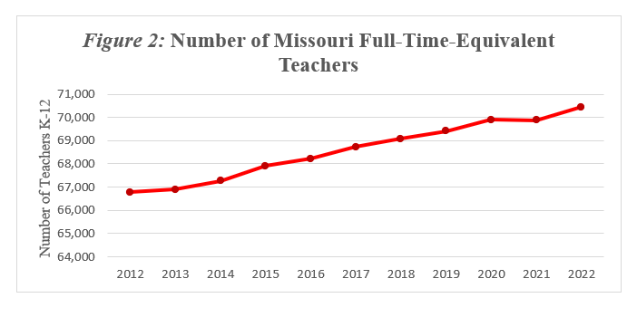 Stories about the teacher shortage conjure images of overwhelmed teachers across Missouri struggling to manage overflowing classrooms and a growing student population. If you never looked at the statewide numbers and only at media headlines, you might think the sky was falling. A few examples: “The Profession that Prepares People for all Other Professions is Diminishing (in Missouri),” “Teachers in Missouri are Not Returning to the Classroom,” and “A Look at the Local Impact of the Teacher Shortage Crisis (in Missouri).”
