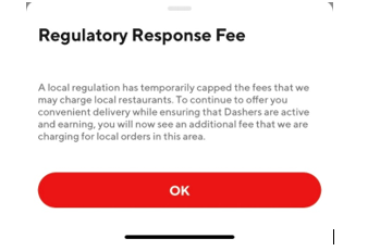 Well, the cap was enacted and consumers can already see the difference it’s making. I was considering an order on DoorDash and I noticed a new fee included during checkout. As shown below, I saw a “Regulatory Response Fee” included with the other taxes and fees.