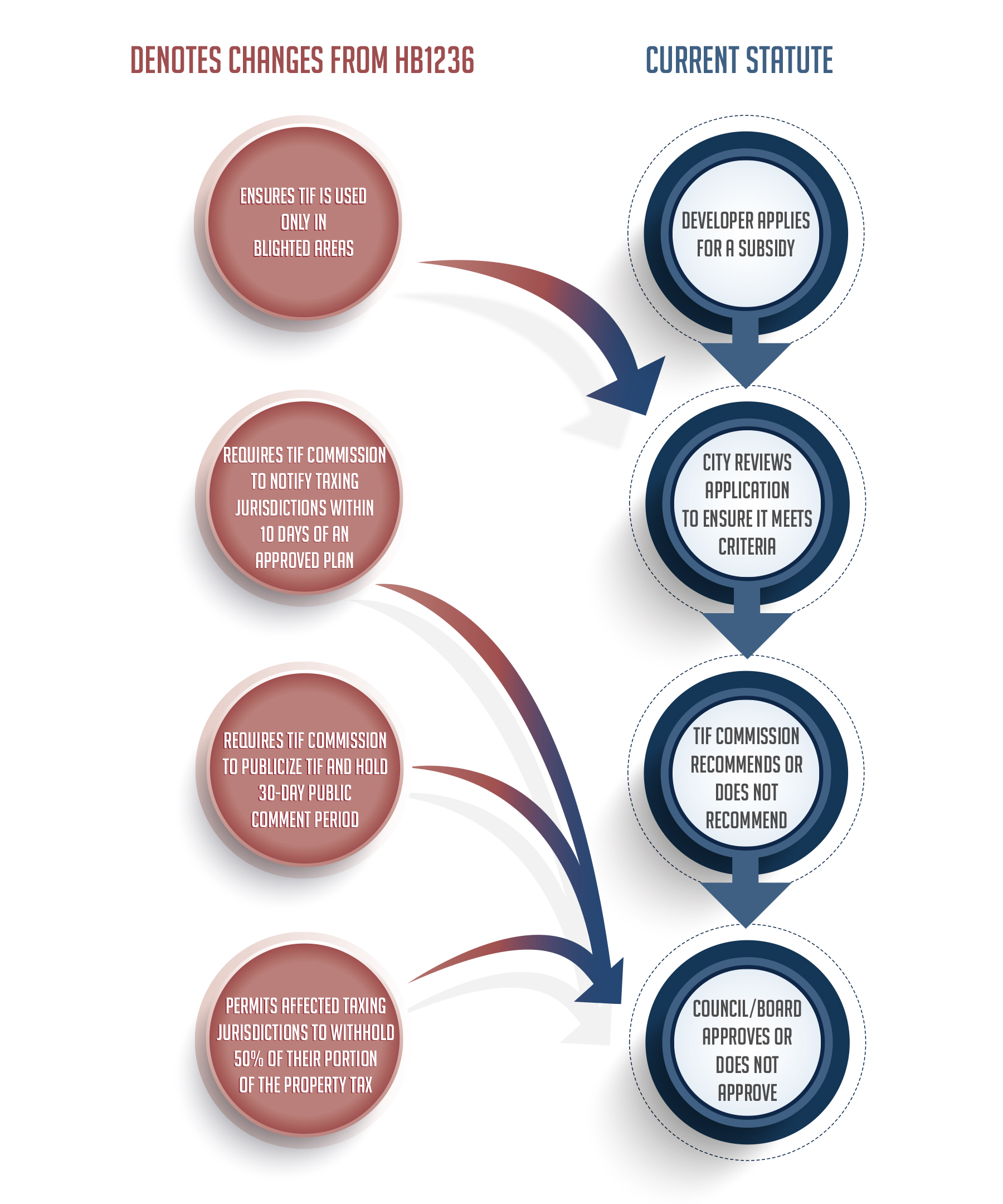- Finally, and perhaps most importantly, it grants those taxing jurisdictions a 60-day period after the city council or board of aldermen approves the TIF plan to decide on whether to withhold half of their portion of the TIF taxes excluded.