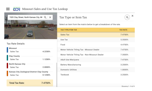 You can find the sales and use taxes in your jurisdiction, and any Missouri jurisdiction, here.