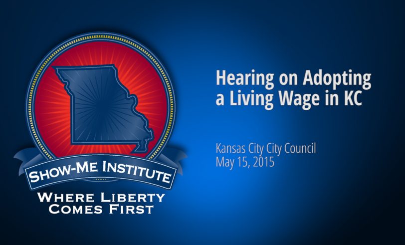 Thank you for the opportunity to testify before the Committee as a Whole today regarding the minimum wage. You may find an electronic copy of Michael Rathbone’s testimony here: https://showmeinstitute.org/publications/testimony/red-tape/1298-on-the-enactment-of-a-living-wage-in-kansas-city.html.
