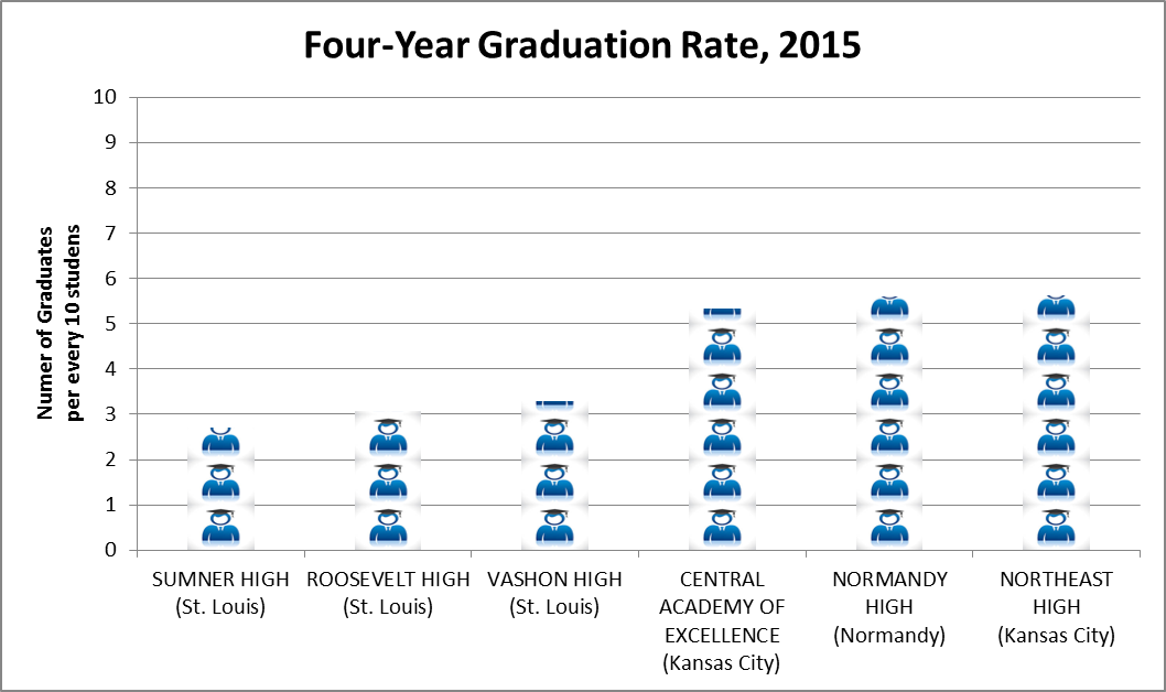 Fewer than three out of ten students who enter Saint Louis' Sumner High School in ninth grade will graduate from the school within four years. In all, there are six high schools in Missouri where fewer than 60 percent of students graduate on time. Fortunately, students in the Kansas City and Saint Louis School Districts have magnet schools and charter schools as an option. In Normandy, students have no such options. They are stuck. Keep this in mind as you read this post.
