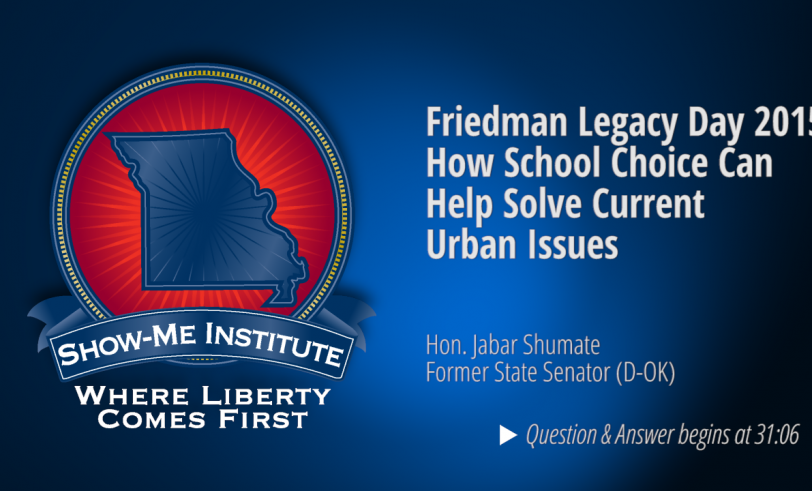 This year’s Friedman Legacy Day event in Saint Louis focused on the importance of school choice with guest speaker Hon. Jabar Shumate. Shumate is a former Oklahoma state senator and state representative. He has been an advocate for kids trapped in low-performing schools and has fought for increased funding for public education. The Friedman Legacy Day celebrates the life and ideas of Economist Milton Friedman, who championed school choice.