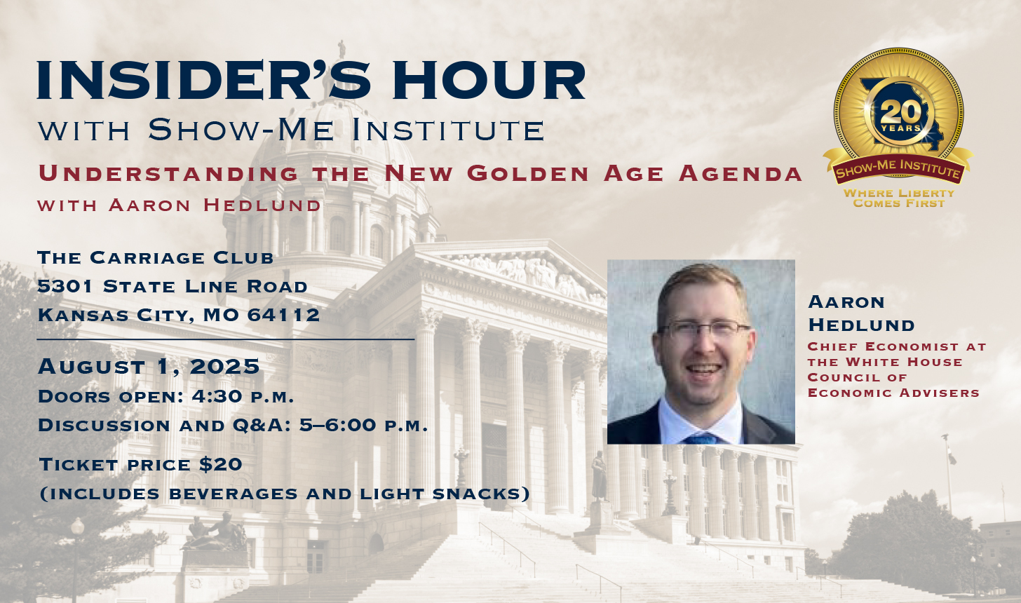 The Show-Me Institute is pleased to welcome back Dr. Aaron Hedlund for an insightful look into the economic plans of the Trump Administration. Dr. Hedlund is the Show-Me Institute’s chief economist, and currently on a leave of absence serving as chief economist at the White House Council of Economic Advisers.