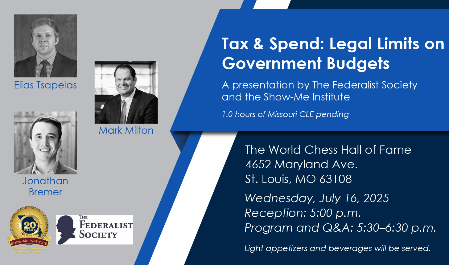 These questions and more will be explored with special attention to Missouri and the City of St. Louis. Topics will include Missouri’s Hancock Amendment along with the City of St. Louis’s fiscal woes and its notorious 1% earnings tax, among other things.