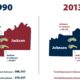 The map above shows the mean travel time to work per census tract in the Kansas City area. The dark...