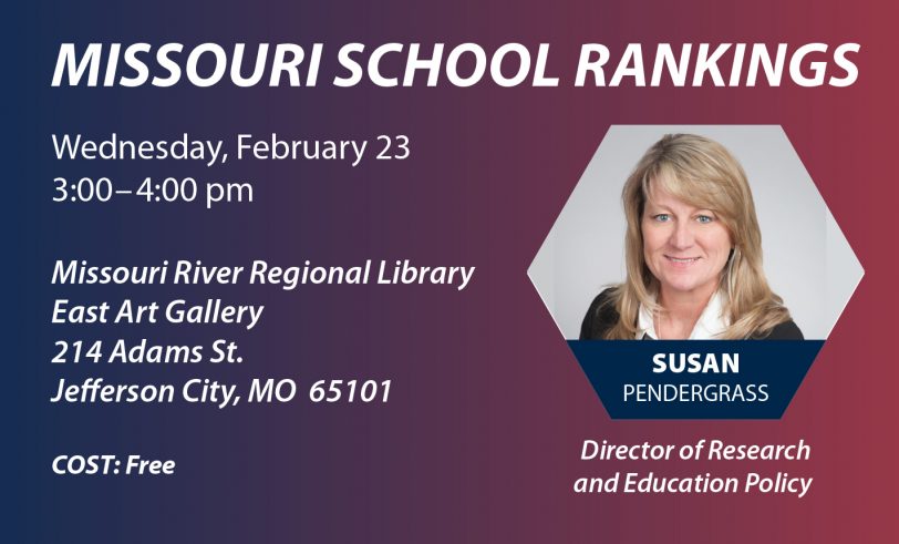 On February 23, Susan Pendergrass, director of research and education policy, will present her findings from the Missouri School Rankings Project and give an overview of how to use the website.