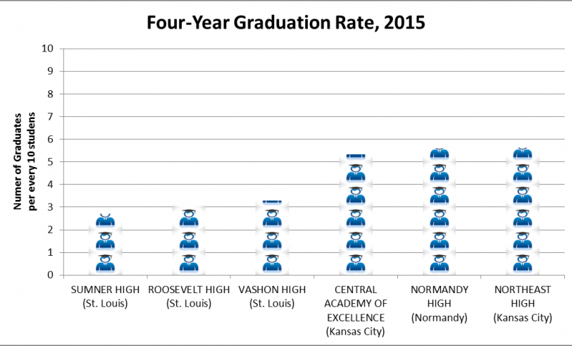 Fewer than three out of ten students who enter Saint Louis' Sumner High School in ninth grade will graduate from the school within four years. In all, there are six high schools in Missouri where fewer than 60 percent of students graduate on time. Fortunately, students in the Kansas City and Saint Louis School Districts have magnet schools and charter schools as an option. In Normandy, students have no such options. They are stuck. Keep this in mind as you read this post.
