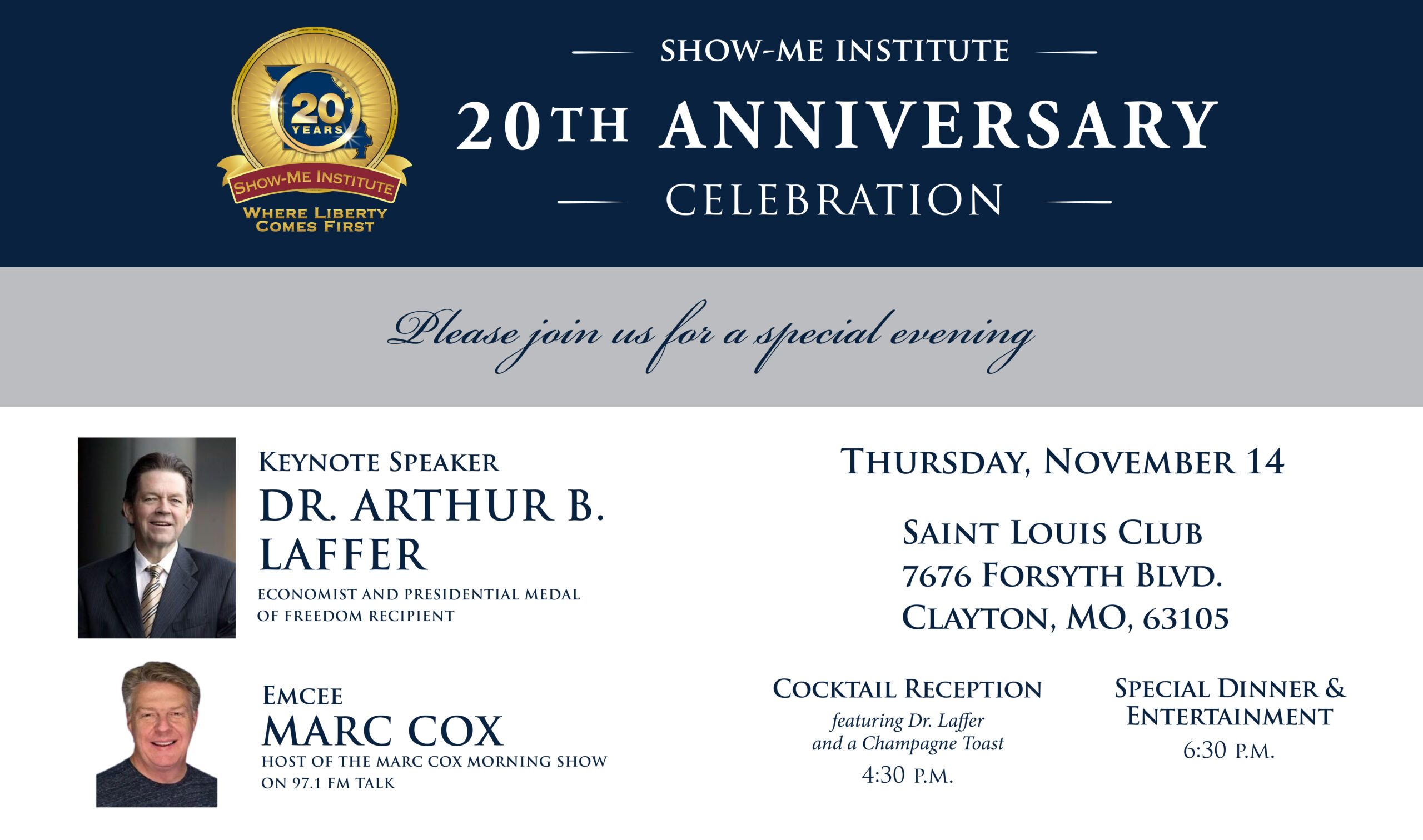 Please join us for a festive evening celebrating history in the making at the Show-Me Institute’s 20th Anniversary Celebration! We […]